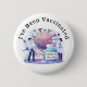 Você foi completamente vacinado e quer avisar o mundo! Este botão faz exatamente isso com "Eu fui vacinado, texto e um gráfico colorido mostrando um grande micróbio-19 com um médico segurando uma seringa e uma enfermeira ao lado de um frasco de vacina Covid-19. As cores neste design incluem roxo, ciano azul e vermelho sobre um fundo branco. O texto é impresso a preto.