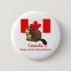 Brincadeira de palavras para esses presentes e roupa. Eles apresentam um castor sentado com a bandeira canadense ao fundo. O texto diz "Canadá.. Casa do Furry Beaver"