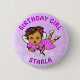 Púrpura Adorável e rosa botão "Garota de Aniversário" Fada afro-americana. Botão de aniversário do estilo de arte folclórica.