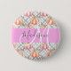 Botão de monograma feminino com primavera/queda de abóboras cor-de-rosa floral e de pêssego e um fundo branco e cinza. Seu nome personalizado e monograma são escritos em uma elegante cinza escrita à mão e um roteiro branco com fundo rosa. Você pode alterar a cor do texto, o estilo e o tamanho da fonte usando a opção personalizar.