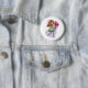 Cute mini art of a whimsical girl with long flowing yellow hair and wearing a green dress and striped stockings. She is holding a beautiful bunch of red roses in her outstretched hands. Originally made as digital art, An adorable piece of artwork ideal for decorating your jacket or bag.