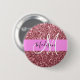 Rapariga e brilho cor-de-rosa rosa cor-de-rosa brilha o nome do monograma branco e o botão inicial. Seu nome personalizado e monograma são escritos em um elegante roteiro escrito à mão com um fundo rosa. Um aniversário perfeito ou presente de Natal!