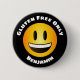 Gluten Livre Sorrindo Emoji Rosto Crachá Redondo. Personalize alterando o texto para atender às suas necessidades.