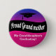O design orgulhoso da arte gráfica do botão da graduação da avó inclui uma fita preta com a avó orgulhosa da palavra, um boné de formatura preto e a graduação o texto da minha neta! O fundo inclui um inclinação roxo e cor-de-rosa. Excelente para o segundo grau, a escola secundária, o ciclo preparatório, a faculdade, a universidade, a escola de comércio, a escola de direito, a escola de cuidados, a Faculdade de Medicina, a academia militar e o mais. As avós, os pais, as irmãs, os irmãos, o tio, as tias e os formandos mostram seu orgulho!
