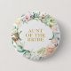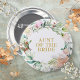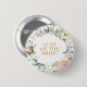 Com uma delicada guirlanda de folhagem e rosas campestres florais em aquarela, este botão chique é uma maneira elegante de identificar as pessoas importantes no seu chá de noiva e no dia do casamento. Incluindo, noiva, noivo, padrinho, mãe ou pai da noiva ou noivo, damas de honra, padrinho ou qualquer outra pessoa que seja importante para o seu dia especial. Criado por Thisisnotme©