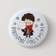 Celebre o grande dia do seu bruxinho com este encantador botão "Mãe da Rapariga de Aniversário"! Este pino adorável apresenta uma ilustração fofa, em estilo chibi de Harry Potter, completa com seus óculos icônicos, cicatriz e um cachecol Gryffindor vermelho e dourado. Feita doce no braço é sua coruja de neve leal, Hedwig. O texto "MÃE DA GAROTA DE ANIVERSÁRIO" é escrito em uma fonte caprichosa à volta da imagem. Colocado contra um fundo azul macio com estrelas colorido, este botão é o acessório perfeito para uma mãe vestir a festa de aniversário mágica do filho, temático Harry Potter.