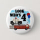 Um cruzador da polícia, motor de incêndio, balões e texto que diz "Olha quem é 4" aparece no nosso design de aniversário do Dia 4 de Heróis.