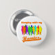 A frase "que pendura com meus homies" e as silhuetas brilhantemente coloridas de um grupo de pessoas que está junto.