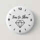 É hora de brilhar! Esta citação motivadora ou motivacional do "tempo de brilhar" é escrita em escrita cursiva com um ícone de diamante abaixo dela. As marcas de hash na face do relógio em volta dobra como a aura brilhante do diamante.
