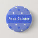Botão de pino de pintura de rosto azul de evento com tela azul Esses botões/crachás de polkadot azuis divertidos facilitam a visualização de quem é o artista de maquiagem designado em uma festa ou evento. Possui texto personalizável 'Pintor de rosto' em um fundo de ponto azul e branco. Perfeito para festas de aniversário para meninos ou qualquer evento com tema de menino.