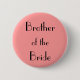 Botão personalizável do pino "Irmão da Noiva". A cor de fundo, a forma, a fonte e o texto podem ser personalizados.