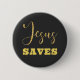 Bóton Redondo 5.08cm Jesus Salva a Brilhante Dourada Amarela