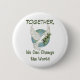 Vista sua mensagem. Compartilhe sua missão. Este botão Juntos pela Paz apresenta um radiante carregando de pomba branca e um ramo de oliveira, a voar através de um globo vibrante — um símbolo eterno de paz, unidade e esperança global.