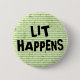 "Lit Happens" é uma brincadeira humorística para leitores e escritores. Neste design, é feito com uma fonte escura e preta em um fundo de papel amarelo angustiado que tem manchas de tinta. É a design engraçada perfeita para você ou um autor/amigo bibliotecário.