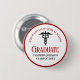 Este botão de formatura personalizado moderno vermelho e preto apresenta tipografia moderna para uma turma de graduado em 2026. Personalize com o seu ano de formatura sob o símbolo do caduceu para um ótimo presente personalizado de enfermeira ou médico ou etiqueta de identificação para uma conferência de médicos.