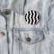Um botão de OpArt em preto e branco cujas as linhas paralelas iludem o olho