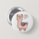 Pintura aquarela fofa de um lhama bege caprichoso com um pano de padrão multicolorido nas costas. À direita, há um balão de fala com um coração rosa fofo dentro.
