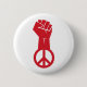 Esta design apresenta um punho vermelho elevado ligado a um símbolo de paz.