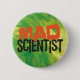 Botão Mad Scientist com design de tipografia divertida sobre fundo colorido para geeks de ciência, estudantes, professores, colegas de trabalho nas ciências.