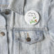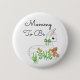 Mãe, para ser o botão do chá de fraldas lama com arco verde, amarelo e verde no fundo, neutro em gênero.