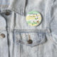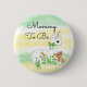 Mãe, para ser o botão do chá de fraldas lama com arco verde, amarelo e verde no fundo, neutro em gênero.