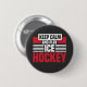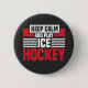 Botão do tema do hóquei com texto preto, branco e vermelho que lê Manter Calmo e Tocar Hóquei no Gelo!