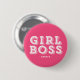 Um botão de pino cor-de-rosa divertido e na moda, com tipografia retrorreflectora marqueada "Girl Boss". Este design está disponível em outros produtos.