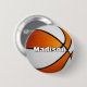 Este botão de basquete personalizado para meninas ou meninos apresenta a imagem realista de uma bola de basquete que tem painéis brancos e laranja alternados - personalizados com o nome do jogador - por katz_d_zynes