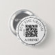 The button features a crisp white center framed by a bold black circular border and a delicate background of black and white floral line art. At the center is a large, scannable QR code that can be easily linked to a Venmo, CashApp, or PayPal account, allowing friends, family, and wedding guests to send a digital drink token directly to the groom.