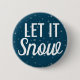 Botão azul moderno e personalizável com flocos de neve brancos. A legante e personalizável legenda branca diz "Deixe-a nevar"