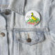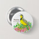 Um pino-botão decorado com uma larva de pata amarela brilhante poleirada sobre uma mistura de pincel de sageba com uma flor silvestre de raiz-amarga cor-de-rosa macia desenhada com tinta e pintada com aquarela. Inspirado pelo pássaro e flor estadual de Montana.