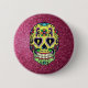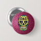 Um botão brilhante e colorido do crânio de açúcar que pode ser vestido para celebrar o Dia dos Mortos e vestido apenas por diversão em qualquer dia do ano.
