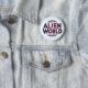 Este botão apresenta as palavras "Mundo Alienígena" em uma fonte ousada composta por uma mistura mesmerante de cores espaciais — azuis cósmicos profundos, púrpuras vibrantes e sopradores como nebulosa. Perfeito para fãs de ficção científica, entusiastas do espaço ou qualquer pessoa que queira adicionar um toque de talento intergaláctico à sua roupa, bolsa ou coleção.