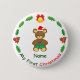 A teddy bear wearing a Santa hat and holding a Christmas present with a Christmas wreath, and a message of “My First Christmas" to celebrate your baby's first Christmas.