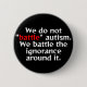 Dizer que você "combate" o autismo está agindo como se fosse algo que você pode vencer. Em vez de tentar "vencê-lo", precisamos ajudar as pessoas a superar sua ignorância sobre isso.