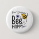 Seja feliz! com o nosso botão "Não se preocupe, Bee feliz". Este design inspiracional apresenta uma abelha fofa cercada por flores roxas alegres e um conto de coração encantador — uma forma excelente de espalhar positividade para a família e os amigos. Você pode alterar as cores desta imagem SVG da abelha.