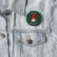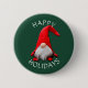 Este botão do feriado do divertimento caracteriza uma imagem bonito de um gnomo farpado branco pequeno que veste um chapéu vermelho do papai noel que venha para baixo sobre seus olhos. Seu texto feito sob encomenda está no branco na parte superior e na parte inferior. Tudo é colocado em um fundo do verde do Natal. Festivo!