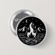 This circular campfire button features a classic pyramid stack of logs topped with a flowing flame, set beneath a crescent moon and a subtle field of stars. Designed in bold black and white, the artwork keeps the details clean and balanced so it reads beautifully even at small sizes.