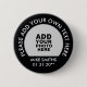 Um botão preto simples para personalizar com sua própria foto (ou seu animal de estimação, logotipo ou qualquer outra imagem), nome, texto e data especial