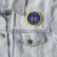 Motif tradicional de scallop ou concha de cockle e texto de peregrino em azul e amarelo. Para a sua peregrinação no caminho da Rua James, com um motif tradicional de conchas Scallop. Adicione facilmente o texto da sua chegada e ajuste a curvatura, se necessário