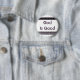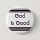 O deus é bom pino coloful cristão do botão das listras. Select personaliza para mudar a cor ou a pia batismal do fundo.