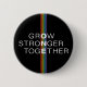 Este botão apresenta uma faixa de arco-íris no meio de um fundo preto. A expressão Crescer mais forte juntos é escrita em negrito. A palavra ONE é solta no centro, em cima das listras coloridas. Uma forma excelente de mostrar seu orgulho e sua unidade.