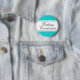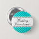Botão do pinback do coordenador/planejador do casamento para casamentos, recepções de casamento e ensaios. Design branco das bolinhas no fundo de turquesa. A cor do fundo pode ser personalizada.