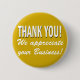 Obrigado que nós apreciamos seu negócio no branco no fundo do ouro disponível no botão, a etiqueta, ou o ímã. Mande empregados vestir o botão para agradecer a seus clientes e deixe-os conhecê-los são apreciados mesmo se você é demasiado ocupado dizer cada pessoa. Ou use a etiqueta em suas facturas ou na outra correspondência especial.