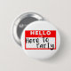 Nome de etiqueta, olá, estou aqui para a festa. Este botão é excelente de um favor de festa ou de uma bolsa de captura.