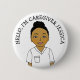 Apresente-se aos seus pacientes ou clientes com este botão de nome fácil de ler. desenho animado de uma enfermeira, fisioterapeuta ou cuidadora de cor em esfregões brancos.