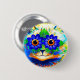Botão com a pintura animal de Louis Wain Olhos de Flor Gato (1860-1939). Um gato arco-íris sorri muito. Flores azuis cobrir seus olhos. Um presente maravilhoso para amantes de gatos e arte inglesa.