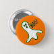 Fantasma brilhante, fofo e assustador de halloween dizendo "BOO!", branco preto e verde neon em laranja, botão redondo de pinback. Perfeito para o halloween, faz um acessório de excelente para crianças.
