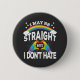 Suportem seus amigos LGBT com este botão fofo que diz "Eu posso ser Hetero, mas não odeio" em tipografia decorativa e gráficos arco-íris.