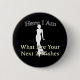 Um design divertido e sedutor com a silhueta preta de uma mulher sensual e o texto Aqui Estou Eu, Quais São Seus Próximos 2 Desejos.